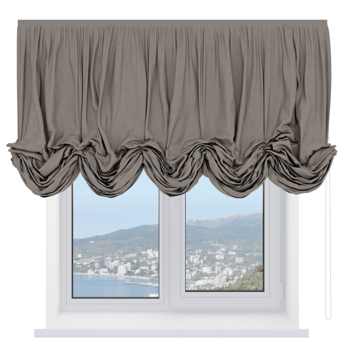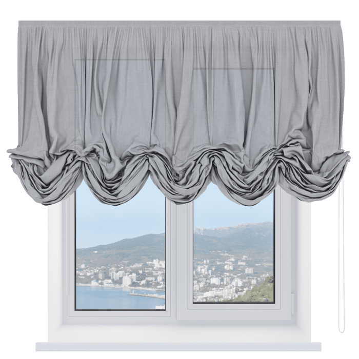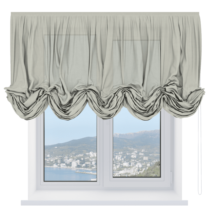 Австрийская штора лён кашемир серый, карниз верёвочный