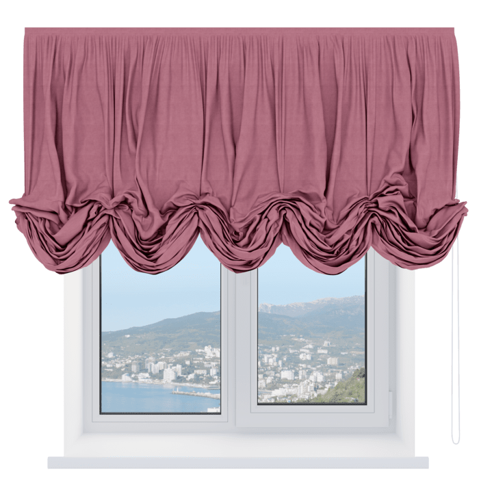 Австрийская штора вельвет брусника, карниз верёвочный